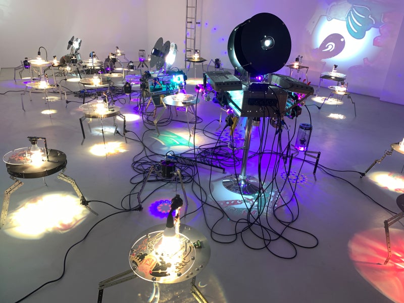 작가는 렌즈, 전구, 모터, 회전판, 그림자극 인형 등을 아상블라주한 장치를 통해, 이미지를 ‘재생’하는 대신 ‘발생’시키는 조건 자체를 전시의 중심에 둔다.