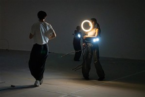 〈신호에 맞춰 울기〉는 공유된 리듬으로 움직이는 군무와 시안 댄서의 신체를 통해, 대중문화의 제작 현장에서 몸을 둘러싼 규율, 감정, 미디어의 상호작용을 다룬다. |