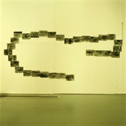 | 강동주, 〈전농 뉴타운 – 청량리역 1.7km / 47km〉, 2013, 종이에 먹지, 30 × 122 cm. 플랫폼엘 소장. 강동주, 〈전농 뉴타운 – 청량리역 1.7km / 47km〉, 2013, 먹지, 30 × 122 cm. |