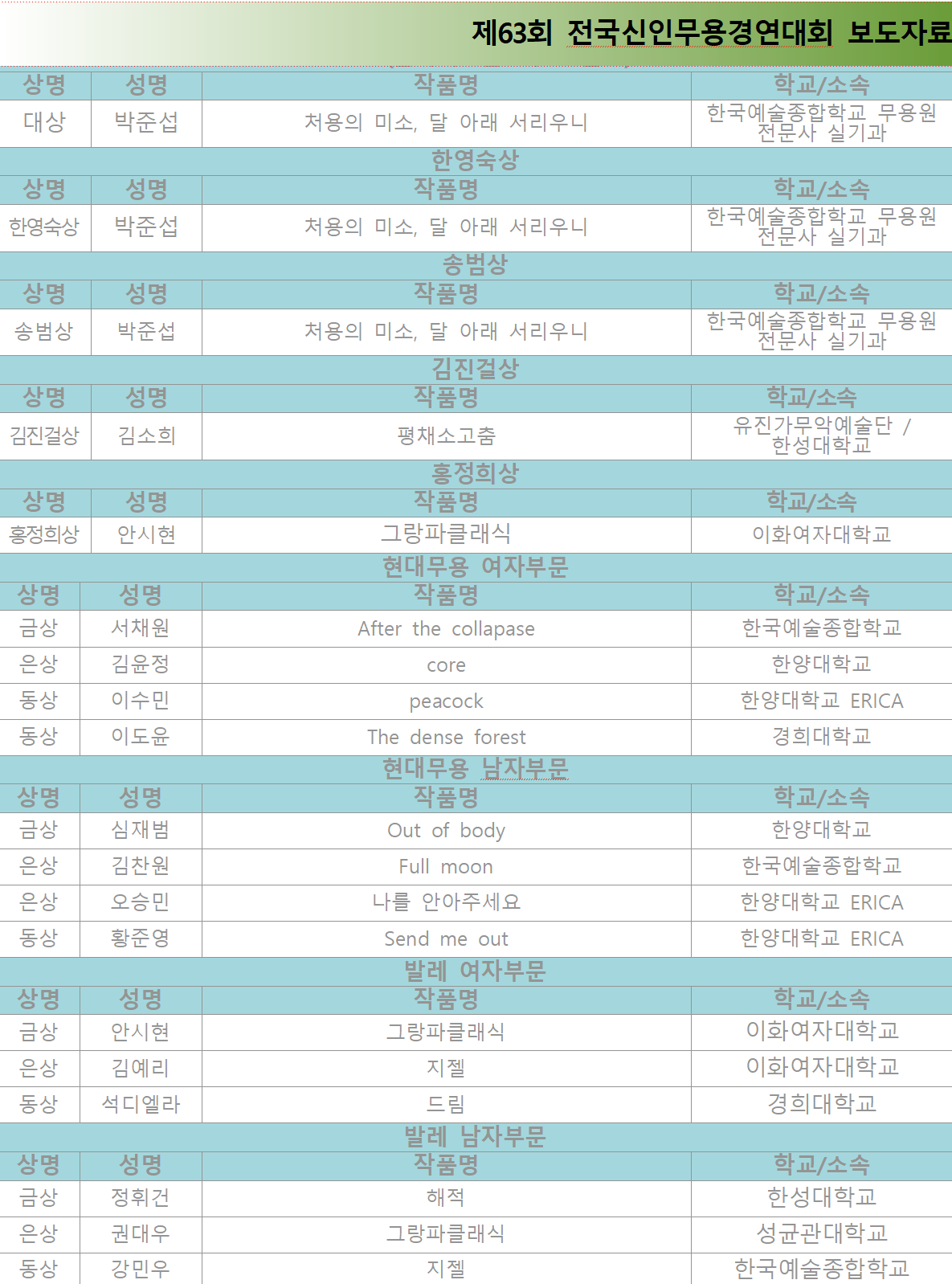 | 행사명 | 제63회 전국신인무용경연대회 |